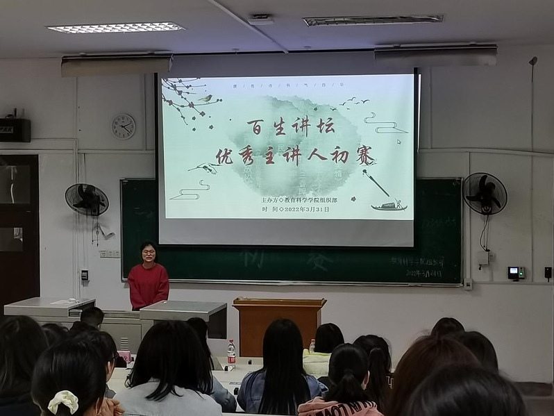 为深入学习习近平新时代中国特色社会主义思想,书写新时代青年爱党爱国新篇章,教育科学学院组织部3月31日下午在教育大楼1j12教室举行了“百生讲坛”优秀主讲人初赛。比赛的嘉宾有校组织部副部长黄凯龙,教育科学学院学生团总支副书记张子玥和组织部部长徐沁燚本次活动的主持人组织部干事褚佳慧。