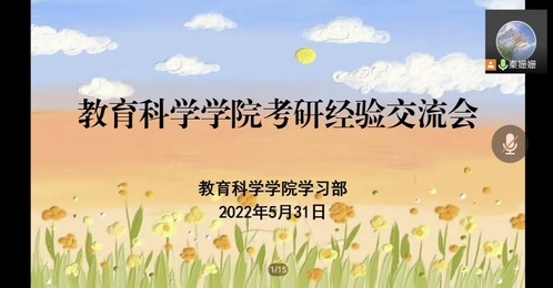 为了激发同学们的考研热情,增强同学们的考研自信心和决心,教育科学学院于5月31日下午举办了2022年考研经验交流会。本次会议采用了线上会议的方式,由辅导员秦姗姗老师担任主持人,19、20、21级的部分学生参与了本次活动。