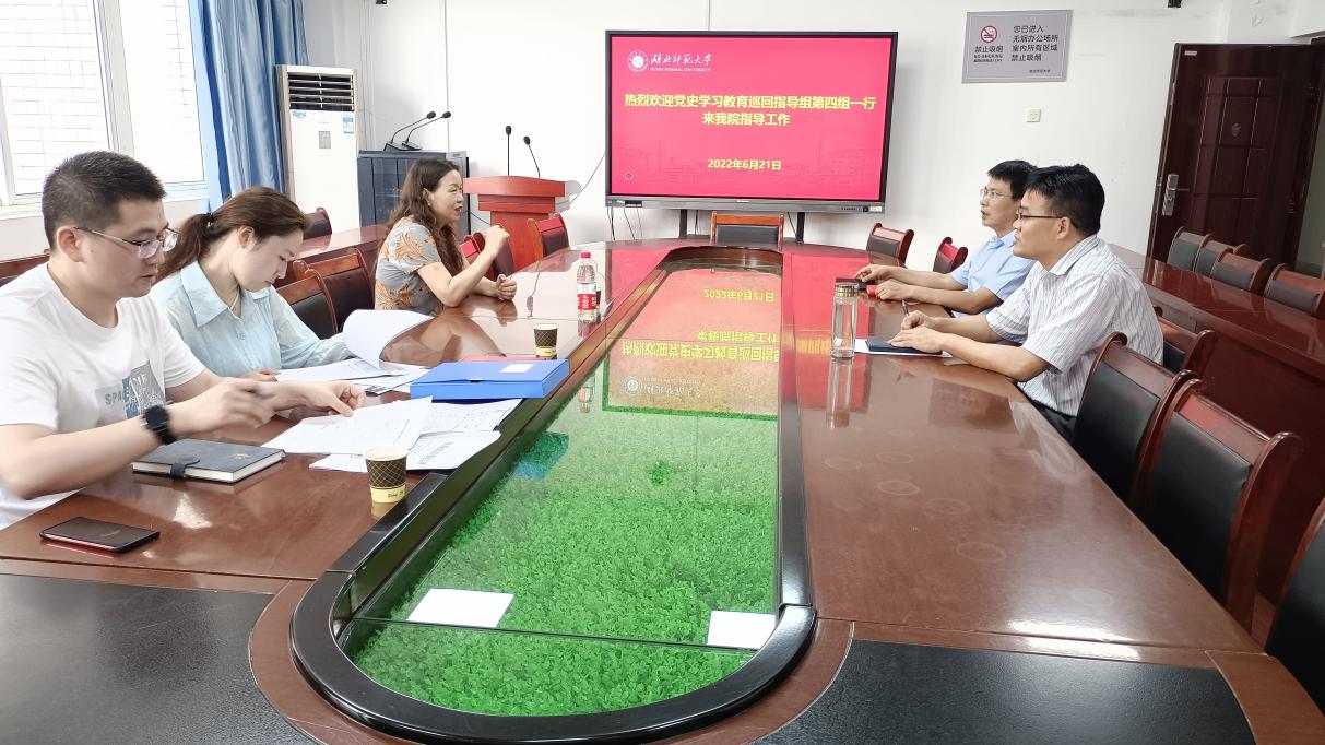 6月21日上午,校党史学习教育巡回指导组第四组组长易桂姣部长一行三人来我院督导检查党史学习教育常态化长效化开展情况,学院党总支书记徐明波、党总支副书记刘刚和党政办负责人等参加了会议。