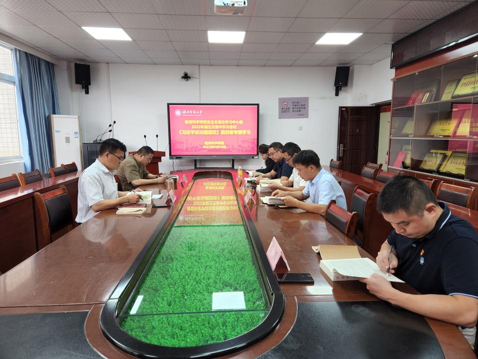 2022年9月28日上午,教科院党总支在教育大楼1317A会议室召开了理论学习中心组2022年第五次学习会议,专题学习了《习近平谈治国理政》第四卷等相关材料。会议由院党总支书记徐明波主持,学院全体班子成员和党政办主任参加了会议。