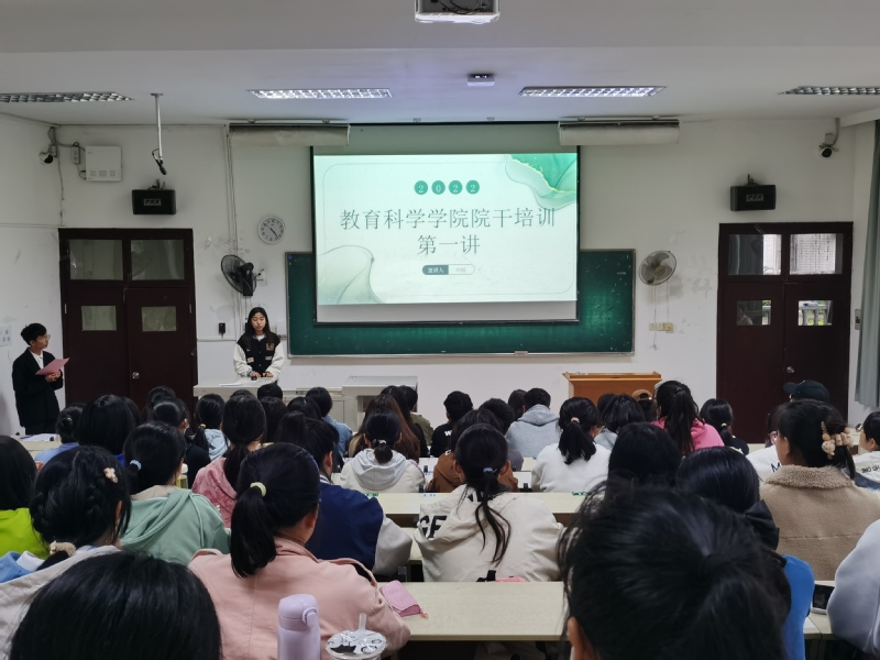 为了促进见习干事们之间的交流与沟通,让见习干事们熟悉部门工作,明确工作内容,更好的完成其工作任务,教育科学学院于10月8日下午在教育大楼1j11和1j12举办了院干培训第一讲。其中,1j11为主会场,1j12为副会场。全体学生干部、见习干事以及新生班级负责人参加了本次培训,青年传媒中心见习干事担任本次活动的主持人。