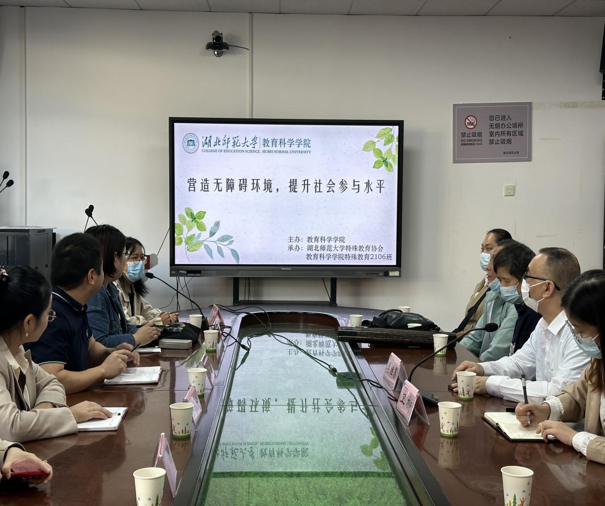2022年10月15日,湖北royal皇家88平台特殊教育2106班联合湖北师范大学特殊教育协会与黄石市盲人协会部分成员在湖北师范大学开展了以“营造无障碍环境,提升社会参与水平”为主题的国际盲人节活动。