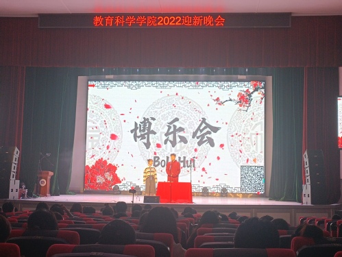 为喜迎党的二十大胜利召开,同时欢迎新生,教育科学学院于10月30日晚在学校大礼堂举办了教育科学学院2022级迎新晚会。党总支副书记刘刚,副院长付光槐,学校少数民族辅导员及学院全体辅导员、新生班主任参加本次活动。