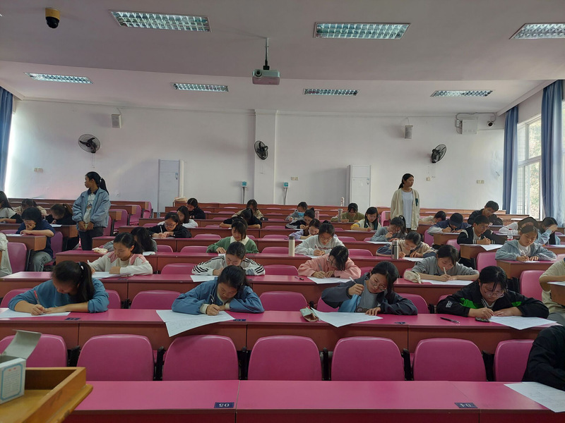首先,开考前十五分钟同学们在监考员的引导下有序摆放私人物品并就坐准备考试,开考前五分钟监考员雷伍娇宣读考场纪律,规范考试秩序。接着,监考员分发试卷考试正式开始。随后,同学们奋笔疾书,认真作答,展现出同学们诚实,守信的考场精神。最后同学们按时上交试卷并有序离场,教育科学学院第三十六期团校结业考试就此结束。