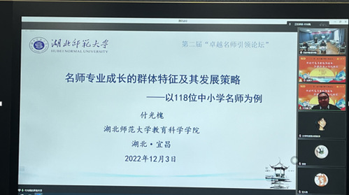 2022年12月3日由三峡大学主办,田家炳基金会赞助的第二届“卓越名师引领论坛”顺利召开,论坛采用线上线下相结合的方式。我院副院长付光槐博士受邀参加了本次论坛,并在大会上作线上专题报告。