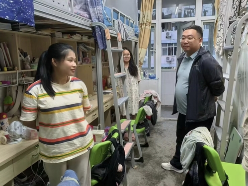 为更好的了解学生中秋、国庆双节假后返校情况,关注学生假期生活与安全,教育科学学院于10月6日晚七点对本院学生宿舍进行了走访慰问。参与本次查寝工作的有教育科学学院党委副书记刘广兵,辅导员秦姗姗,以及部分班主任老师和学生干部。