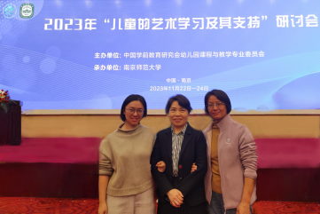 2023112324日,我院严春霞、寻舒珊老师参加了由中国学前教育研究会幼儿园课程与教学专业委员会在南京召开的“儿童的艺术学习及支持”研讨会,会议主要围绕支持儿童的音乐和美术深度学习的理论与实践问题进行深入研讨与交流。本次会议以线上线下相结合的形式展开,包括开幕式和四个平行专题论坛,分别是幼儿艺术学习评价、课程实践中的艺术整合、生活化艺术教育、艺术学习区域和环境创设与支持,每个论坛都安排了幼儿园实地观摩与手工坊,与分论坛对应的分别是南京市实验幼儿园、北京东路小学附属幼儿园、南京市第一幼儿园、南京市瑞金路幼儿园。