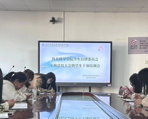 为总结各部门的学期工作并为来年的学生工作提供指导,教育科学学院学生自律委员会于12月7日中午13:30在教育大楼1317A召开了年终总结大会暨学生干部培训会,本次参会人员有辅导员秦姗姗老师、伊力扎提老师及第三届学生自律委员会中心组成员。