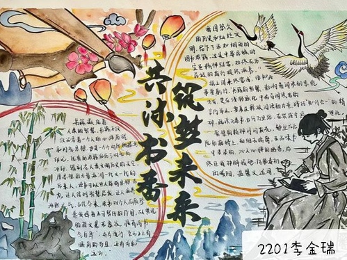 活动伊始,外宣部向大家发布活动通知并积极宣传。随后,收集整理参赛同学的手抄报,由外宣部人员进行评选。活动期间,同学们积极参与,将自己的阅读心得和感悟呈现在作品中。这些优秀作品大多集合了文字、图片和色彩的艺术创作,画出了作品的深度和内涵,展示了读书的乐趣与收获。最后,经过外宣部的认真评选,本次活动的获奖情况如下,李金瑞、简雅雯荣获一等奖,沈彦彤、郭苹葳、舒婷荣获二等奖。
