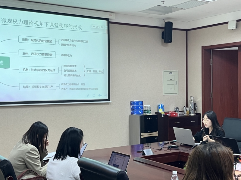 会议还围绕自主知识体系建设与学科发展、课程教学改革实践、人工智能与课程教学等议题举办了4个分论坛和1个研究生沙龙,60余位专家学者和硕博士研究生作了分论坛发言。在以“课堂教学改革实践”为主题的分论坛二中,张悦作为参会代表就其论文《福柯微观权力理论视角下的课堂秩序及其重构》进行汇报,为课堂秩序的研究提出一个独特视角并为其重构指明方法和路径。汇报结束,首都师范大学张菁教授进行点评与指导。