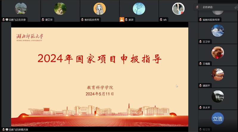 为进一步推进国家社科基金项目、全国教育科学规划项目申报工作,511日晚,我院邀请湖北大学靖国平教授、华中科技大学李太平教授、北京大学蒋凯教授、湖南师范大学王卫华教授、湖北省教育科学研究院张传萍研究员、华中师范大学涂艳国教授通过腾讯会议我院教师进行项目申报指导。本次会议由副院长崔波主持项目申报负责人和部分教师参加了本次活动