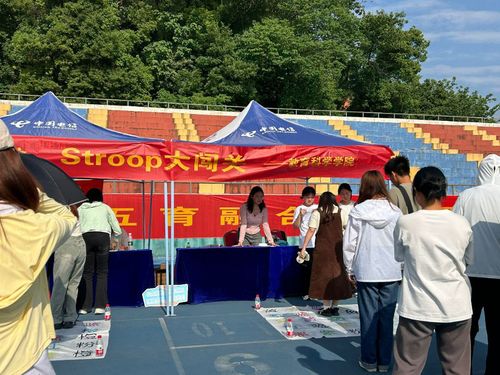 为进一步普及心理健康知识同时促进大学生德智体美劳全面发展,教育科学学院学生自律委员会心理服务部于5月9日下午在湖北师范大学田径场举办以智育为主题的心理游园会Stroop大闯关的摆点活动