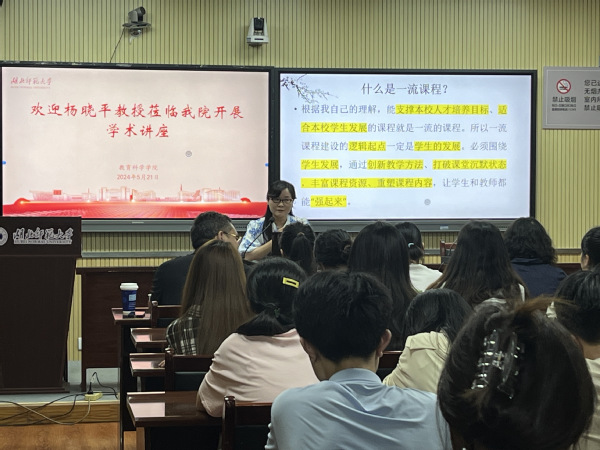 为了进一步加强国家一流本科课程建设,提升本科教学质量。5月21日,遵义师范学院教授杨晓平应邀来我院开展题为“做我所爱,爱我所做——国家一流课程建设经验分享”的学术报告会。报告会由教务处副处长付光槐主持,学院师生代表聆听了此次报告会。