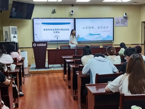 教育科学学院自律委员会学风建设部于5月24日上午在教育大楼1316举办了教育学专业就业与考研分享会。此次活动旨在为即将升入大四将要面临就业和考研选择的同学们提供宝贵的经验分享和指导。教育科学学院教育系主任鹿星南、2101班班主任徐燕敏老师、分享经验的榜样学生以及2101班全体同学参加了本次分享会。本次活动由鹿星南老师主持。