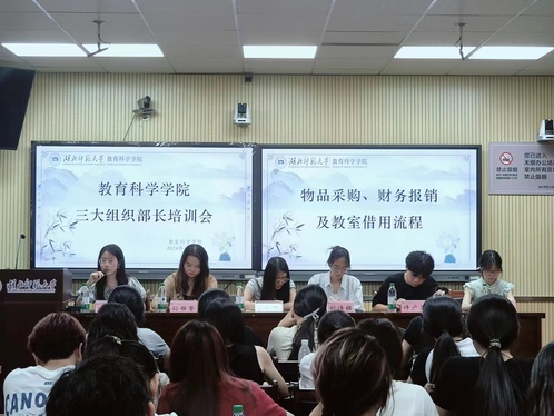 为帮助新任学生干部更好了解相关工作,严格遵守团学及自委会工作纪律,教育科学学院三大学生组织于6月16日晚上在教育大楼1316A召开了学生干部工作培训会。出席本次会议的嘉宾有团委学生副书记许广昊、雷伍娇,学生会主席刘施雨、刘诗雅,学生自律委员会主席刘晓浅、孙雅馨及三大组织全体学生干部。