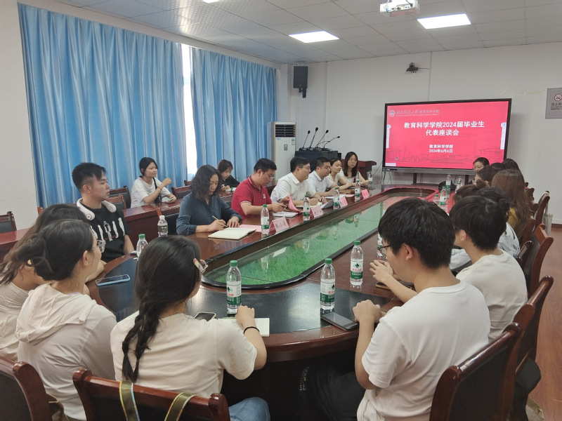 2024年6月6日下午,教育科学学院2024届毕业生代表座谈会在教育大楼1317A会议室召开。院党委书记杨志丹,副院长崔波、张小菊,本科生、研究生毕业生代表参加此次座谈会。座谈会由学院党委副书记刘广兵主持。