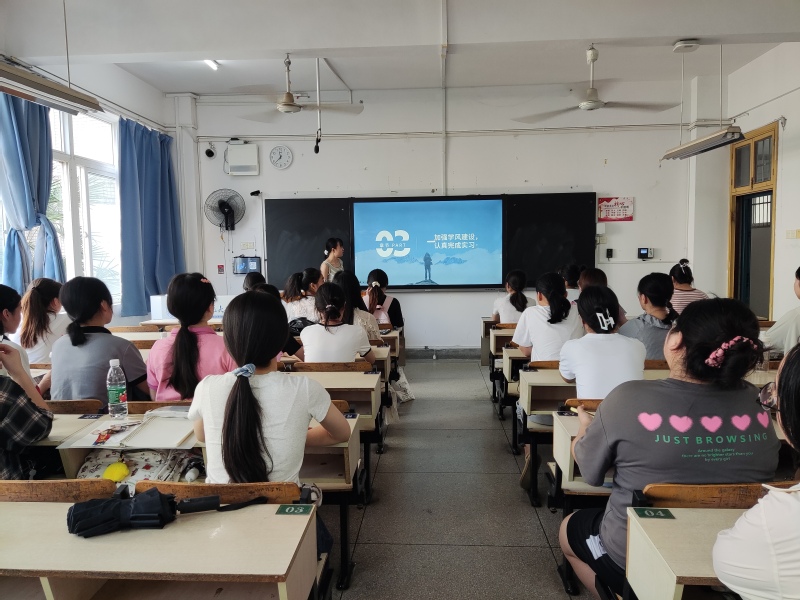 活动开始,张铮通过简短图文为大家讲解了建国七十五年风雨历史和习近平在纪念邓小平同志诞辰120周年座谈会上的讲话主要内容,让更多的同学了解其历史和蕴藏的优质中国特色社会主义思想。接着,张铮从思想,态度,作息等多个方面提醒同学们要严格遵守纪律来约束自己,把文明生活习惯看作开展新学期的前提条件。最后,张铮强调了学校安全,财产安全,以及提醒同学们要注意宿舍楼消防安全,不轻信他人,以及注意自身心理健康,有问题及时向老师和学校寻求帮助。