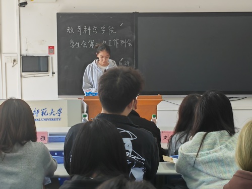 为对本月已完成的学生工作进行总结和反思,并对下月规划的活动进行细致调整,教育科学学院学生会于10月24日下午在教育大楼1203开展第二次工作例会。出席本次会议的成员有辅导员夏青腾,学生会主席团成员刘诗雅、刘施雨及学生会全体部门负责人。