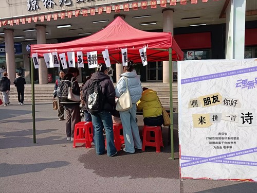 寒冬已逝,春意盎然,新的学期已经开始。为了唤醒人们对诗歌的热爱,并激发大家的创新思维与创作能力,教育科学学院学生会权益部于227日在琼林苑门口举办了“嘿,朋友,来拼一首诗”的摆点活动。本次活动由学生会权益部负责,面向全校学生开展。