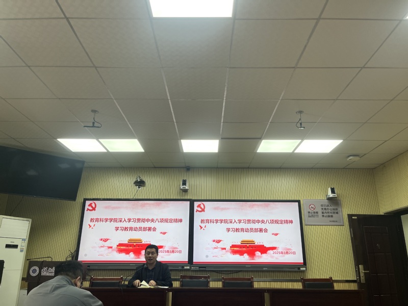 2025320日下午,教育科学学院召开党员大会,认真学习习近平总书记关于深入贯彻中央八项规定精神学习重要指示精神,传达学习中央、省委有关会议精神,认真贯彻落实学校党委部署要求,启动部署学院学习教育工作。学院党委副书记刘广兵主持会议,学院全体教职工党员参加会议。