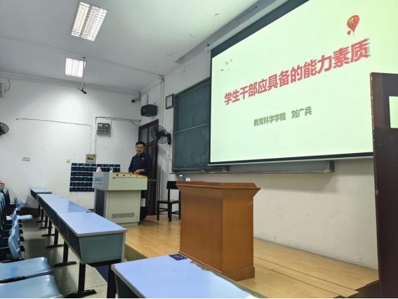 为培养学生干部的素质能力,提高见习干事的思想政治觉悟,,促进三大组织的工作顺利展开。11月8日下午,教育科学学院院干培训会第二讲在教育大楼1J23顺利开展,出席本次培训会的有党委副书记刘广兵及三大组织全体见习干事。