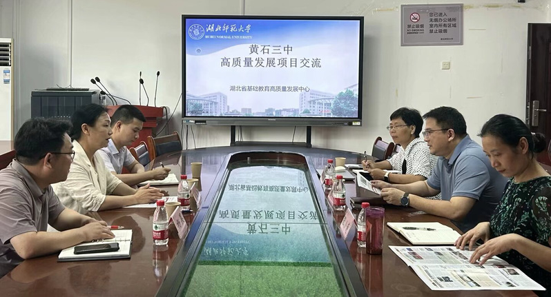 2025年6月18日,黄石三中党委书记周燕霞、校长杨昊一行莅临湖北省基础教育高质量发展中心,与中心主任朱浩院长、教育科学学院副院长张小菊教授、中心副主任邹从容教授围绕特色高中建设规划、课程体系重构、课堂改革实践、师生成长评价等核心议题开展深入探讨,达成多项合作共识。此次会议旨在通过校校合作,推动黄石三中走高质量发展和特色化道路,实现高中育人机制改革。