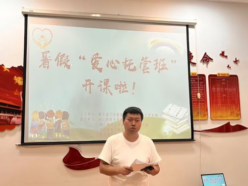 活动伊始,张辉书记安排了小朋友和实践队员的签到活动,并向家长发放了《爱心托管安全承诺书》,强化家校协同育人意识。紧接着,张辉书记重点强调了班级纪律规范,明确了违纪处理办法,并特别强调防溺水、防中暑等暑期安全重点。通过如此制度化、规范化的管理流程,不仅提高了托管服务的专业性,也为后续教学活动奠定安全基础。张辉书记指出:“这类活动要实现‘双赢’——孩子获得成长,大学生得到锻炼”。随后,小朋友与实践队员一同合影,标志着开班典礼落下了帷幕。